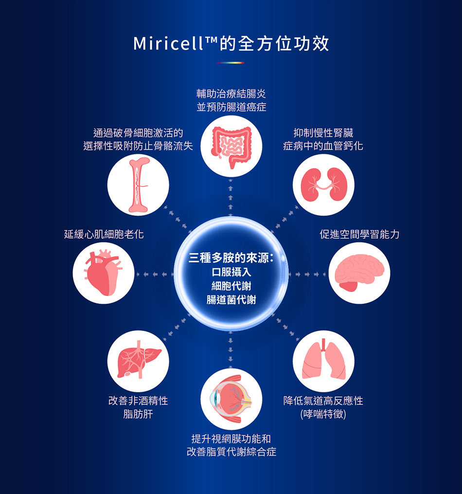 Miricell™主要作用是保護細胞,達致抗氧化、抗衰老的健康目的。同時,它亦證明有助於維持適當的端粒長度,減慢其縮短速度。
